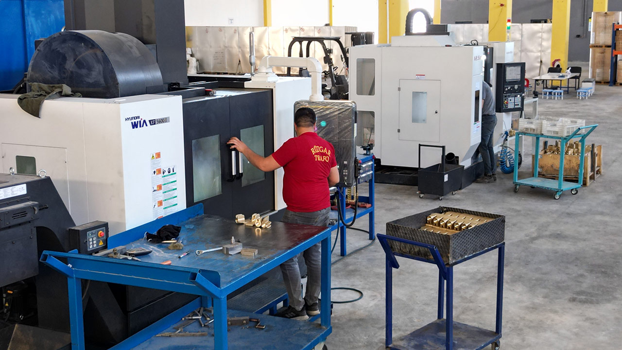 5.000 m² açık alan ve 2.700 m² kapalı üretim tesisiyle son teknoloji makinelerle donatılmış altyapıya sahip olan Rüzgar Trafo, yüksek kalite standartlarında imalat yapmaktadır. İzolasyon grupları, aksesuar parçaları ve bushing grupları başta olmak üzere trafonun birçok kritik bileşenini üretmekte ve sektörün ihtiyaçlarına hızlı, güvenilir ve ekonomik çözümler sunmaktadır.